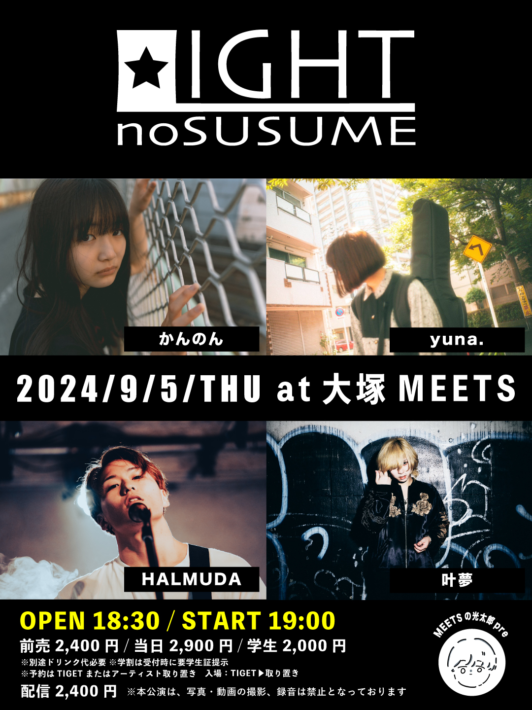 ADV ¥2400(+Drink) / DOOR ¥2900(+Drink) / 学生 ¥2,000(+Drink) / 配信¥2400