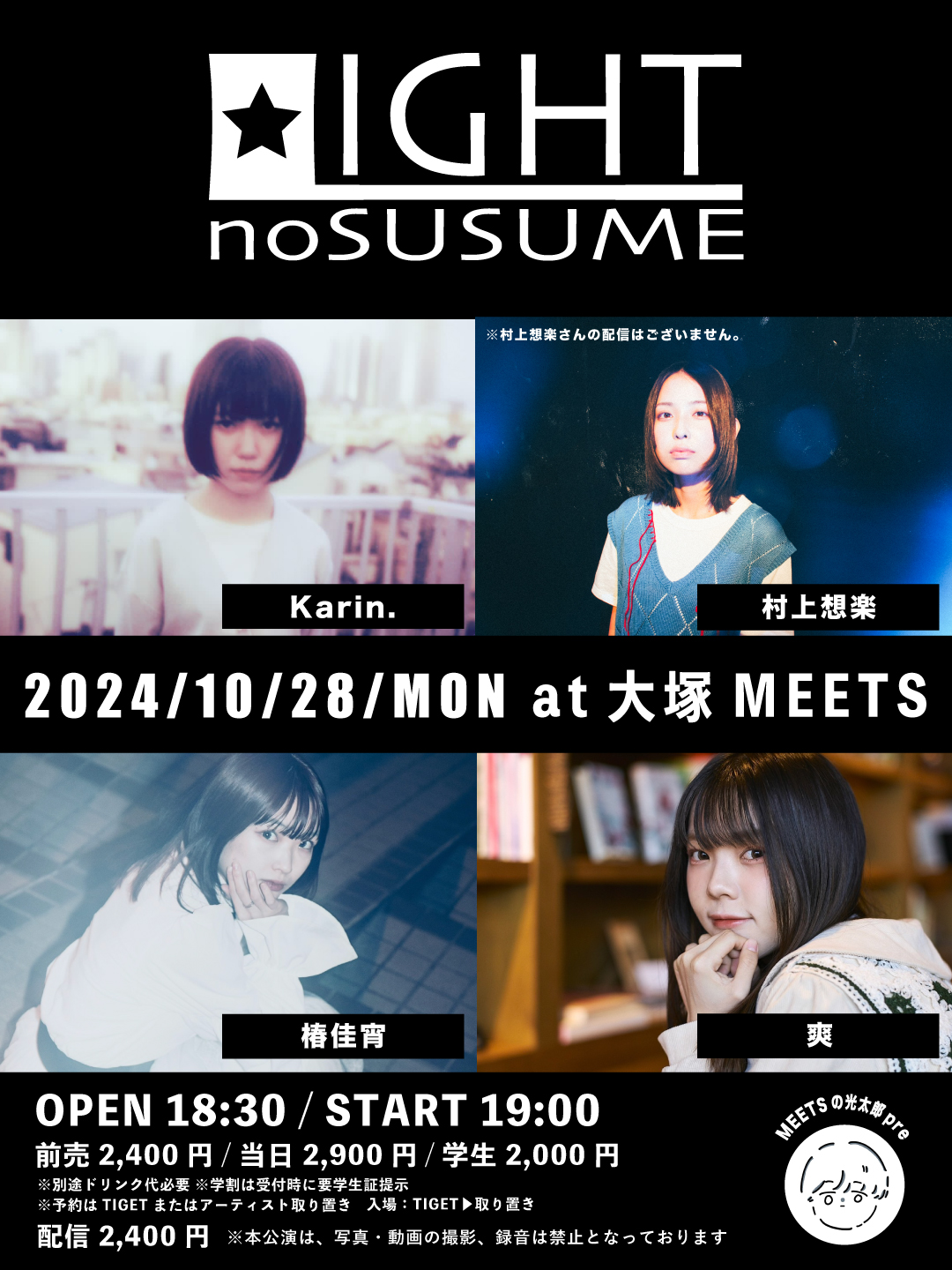 ADV ¥2,400(+Drink) / DOOR ¥2,900(+Drink) / 学生 ¥2,000(+Drink) / 配信¥2,400