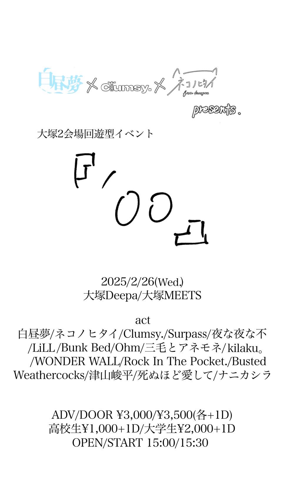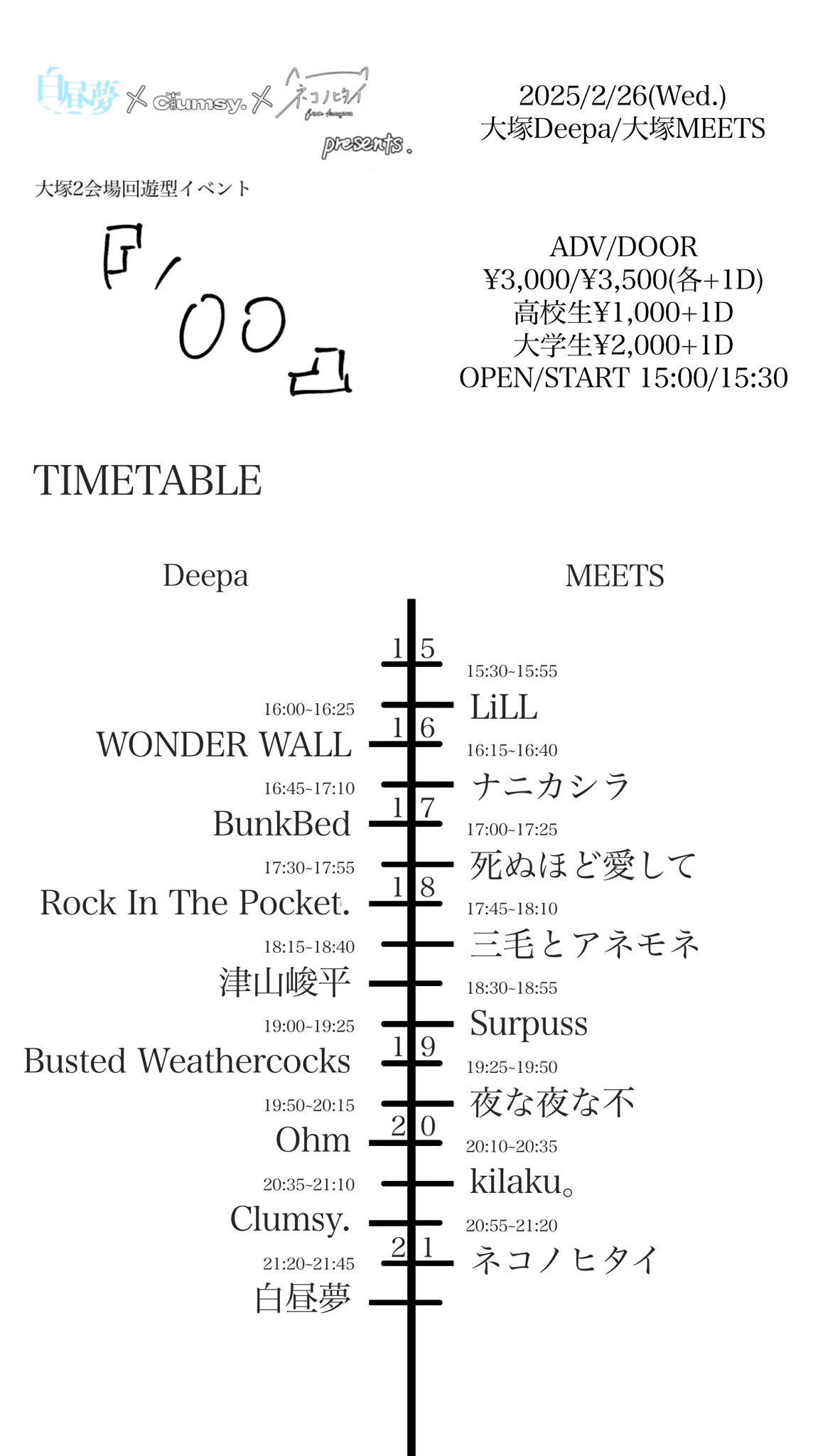 ADV¥3000(+Drink) / DOOR¥3500(+Drink) / 高校生¥1000(+Drink) / 大学生¥2000(+Drink)