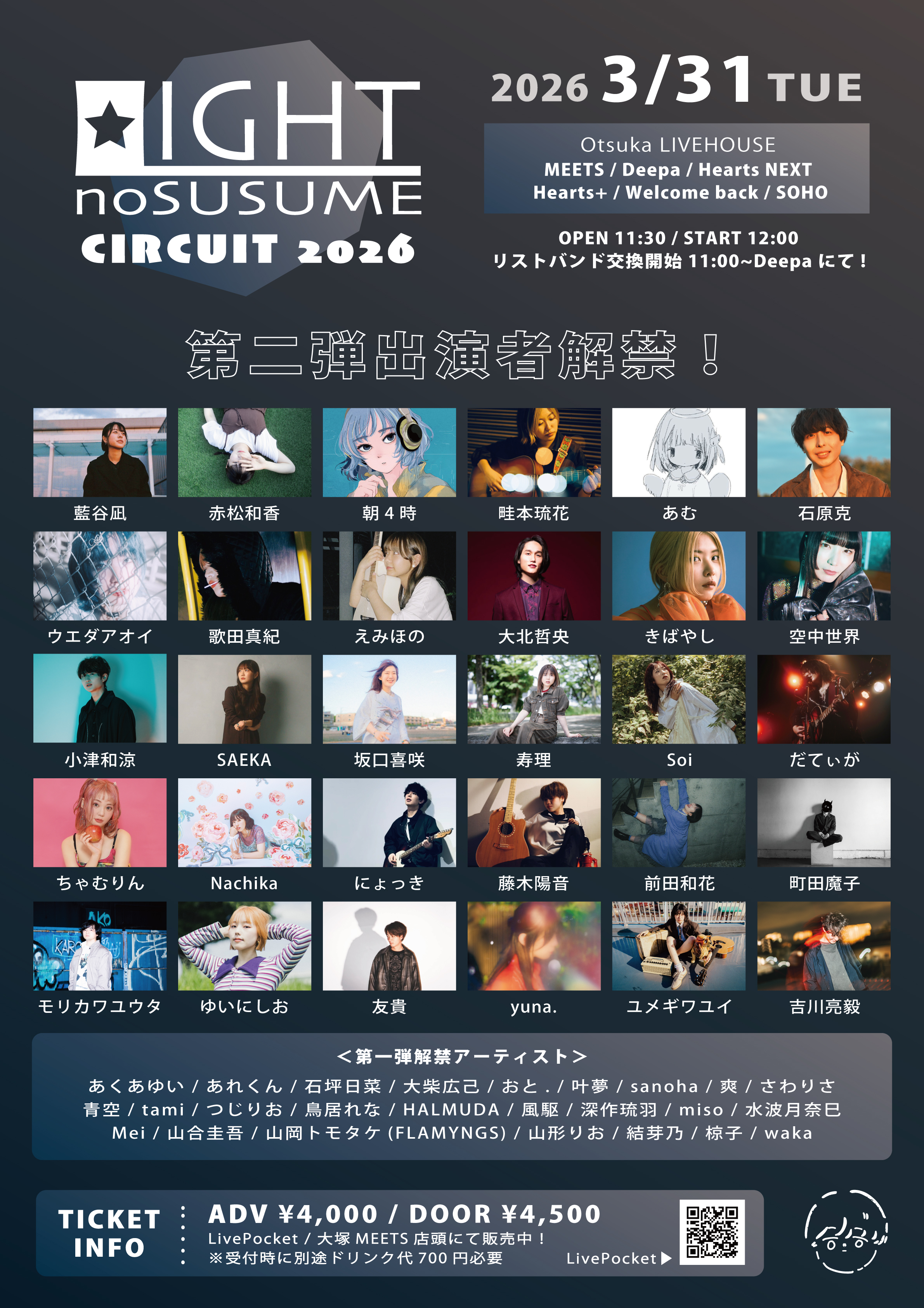 ADV ¥4,000(+Drink) / DOOR ¥4,500(+Drink)